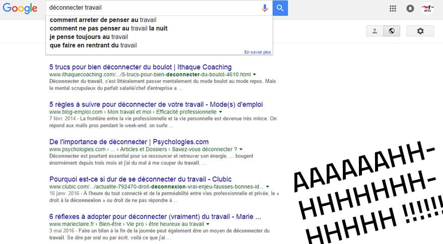 Il vous suffit de taper les mots-clefs « déconnecter » et « travail » dans le moteur de recherche de votre choix pour voir apparaître un nombre incalculable de forums sur lesquels viennent chercher conseils ces accros au travail et de sites de développement personnel qui vous donnent les clefs de cette déconnexion.