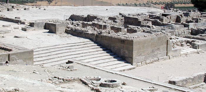 Entrée du palais de Phaistos, en Crète, où a été découvert le fameux disque